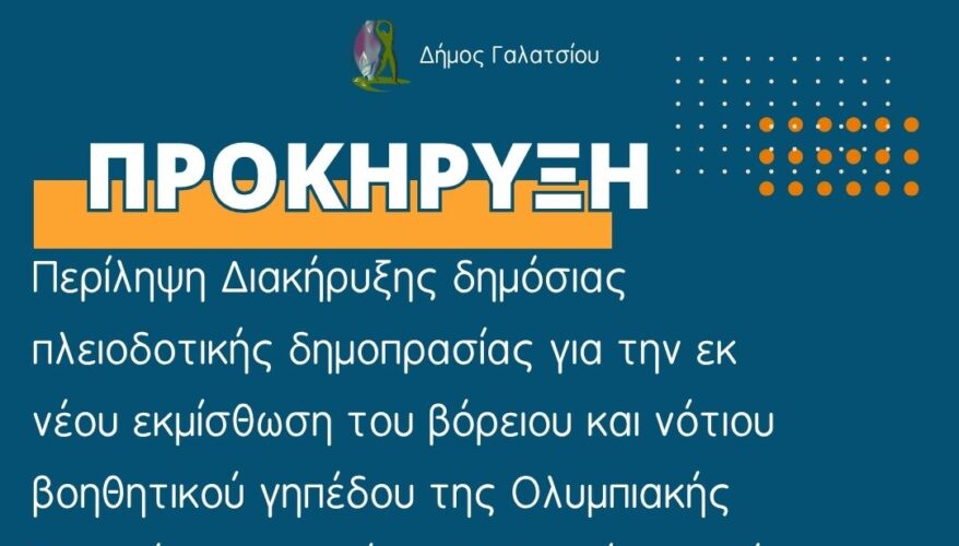 Περίληψη Διακήρυξης δημόσιας πλειοδοτικής δημοπρασίας για την εκ νέου εκμίσθωση του βόρειου και νότιου βοηθητικού γηπέδου της Ολυμπιακής Εγκατάστασης Δήμου Γαλατσίου, μαζί με τους αντίστοιχους βοηθητικούς χώρους τους, για τηλεοπτική χρήση