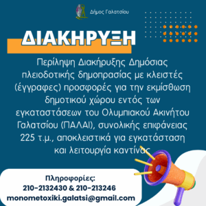 11146, Γαλάτσι, Τηλ. 2132055420 e-mail: monometoxiki.galatsi@gmail.com, από την αρμόδια προς τούτο