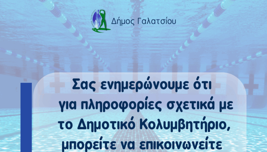 Πληροφορίες για το Δημοτικό Κολυμβητήριο στο τηλέφωνο 2132055303