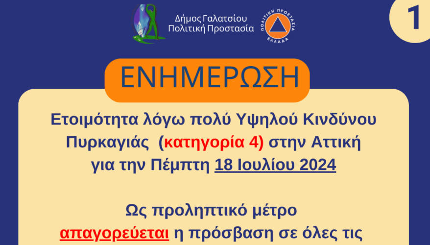 Πολύ υψηλός κίνδυνος πυρκαγιάς (κατηγορία 4) προβλέπεται για αύριο Πέμπτη 18 Ιουλίου 2024