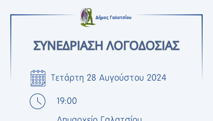 Σας καλούμε στην Ειδική Συνεδρίαση Λογοδοσίας της Δημοτικής Αρχής στις 28.08.2024 ημέρα Τετάρτη και ώρα 19:00, η οποία θα γίνει σε Μεικτή Συνεδρίαση (δια ζώσης και ταυτόχρονα με τηλεδιάσκεψη) στην αίθουσα του Δημοτικού Συμβουλίου σύμφωνα με τις διατάξεις του άρθρου 67Α του Ν. 3852/2010, όπως προστέθηκε και ισχύει με το άρθρο 7 του Ν. 5056/2023.