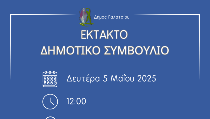 Σύμφωνα με τις διατάξεις του άρθρου 67 του Ν. 3852/2010, όπως αυτό αντικαταστάθηκε και ισχύει από το άρθρο 6 του Ν. 5056/2023, σας καλούμε για έκτακτη συνεδρίαση του Δημοτικού Συμβουλίου που θα πραγματοποιηθεί με τη διαδικασία της «δια περιφοράς» (e–mail, τηλέφωνο και μέσω μηνύματος), την 05η ΜαΪου 2025, ημέρα Δευτέρα και ώρα 12:00 έως 13:00, για την άμεση λήψη απόφασης λόγω περιορισμένων χρονικών περιθωρίων, που αναφέρεται στο μοναδικό θέμα της ημερήσιας διάταξης.