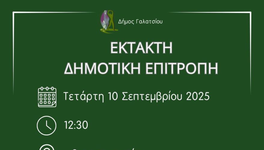 Έχοντας υπόψη τις διατάξεις του άρθρου 75 του Ν. 3852/2010 (ΚΑΛΛΙΚΡΑΤΗΣ) όπως αυτός αντικαταστάθηκε και ισχύει με τα άρθρα 8 και 9 του Ν. 5056/2023, σας καλούμε στην Έκτακτη Συνεδρίαση της Δημοτικής Επιτροπής που θα πραγματοποιηθεί την 10η Σεπτεμβρίου 2025, ημέρα Τετάρτη και ώρα 12:30 για την κατεπείγουσα λήψη απόφασης έγκρισης ή μη 8ης Αναμόρφωσης για την άμεση δημιουργία νέων παροχών ΕΥΔΑΠ στον υπό κατασκευή διπλό Βιοκλιματικό Βρεφονηπιακό σταθμό, ώστε να ξεκινήσει τη λειτουργία του εντός Σεπτεμβρίου, που αναφέρεται στο μοναδικό θέμα της ημερήσιας διάταξης.