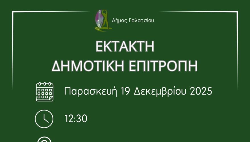 Έχοντας υπόψη τις διατάξεις του άρθρου 75 του Ν. 3852/2010 (ΚΑΛΛΙΚΡΑΤΗΣ) όπως αυτός αντικαταστάθηκε και ισχύει με τα άρθρα 8 και 9 του Ν. 5056/2023, σας καλούμε στην Έκτακτη Συνεδρίαση της Δημοτικής Επιτροπής που θα πραγματοποιηθεί την 19η Δεκεμβρίου 2025, ημέρα Παρασκευή και ώρα 12:30 για την κατεπείγουσα λήψη αποφάσεων για: α) Έγκρισης 13ης Αναμόρφωσης Προϋπολογισμού για την κατανομή συμπληρωματικής επιχορήγησης και β) έγκρισης σύναψης συμβάσεων του Χριστουγεννιάτικου Φεστιβάλ 2025, λόγω της καταληκτικής ημερομηνίας έναρξης αυτού που αναφέρεται στα θέματα της Ημερήσιας Διάταξης.