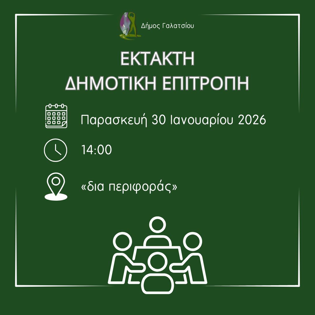 30-01-2026 Ενημέρωση, Προσκλήσεις, Προσκλήσεις Δημοτικής Επιτροπής Αρ. Πρωτ.: 3323 Ημ/νία Πρωτ.: 30/1/2026 Εποπ. Φορέας: ΔΗΜΟΣ ΓΑΛΑΤΣΙΟΥ