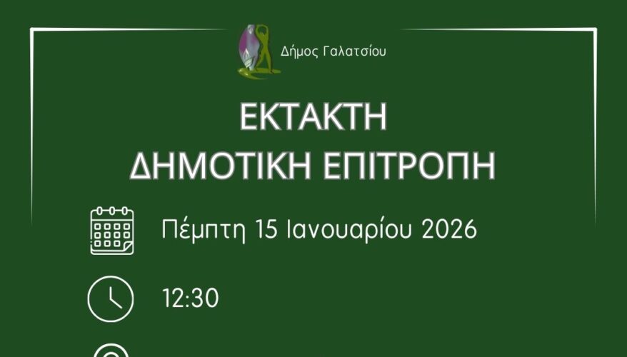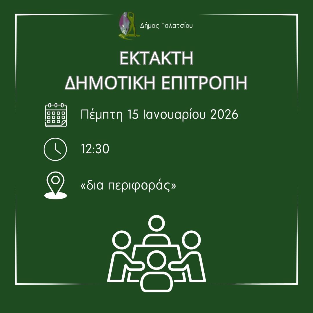 Έχοντας υπόψη τις διατάξεις του άρθρου 75 του Ν. 3852/2010 (ΚΑΛΛΙΚΡΑΤΗΣ) όπως αυτός αντικαταστάθηκε και ισχύει με τα άρθρα 8 και 9 του Ν. 5056/2023, σας καλούμε στην Έκτακτη Συνεδρίαση της Δημοτικής Επιτροπής που θα πραγματοποιηθεί την 15η Ιανουαρίου 2026, ημέρα Πέμπτη και ώρα 12:30, για την κατεπείγουσα λήψη αποφάσεων: α) ολοκλήρωση σύνταξης Σχεδίου Προϋπολογισμού οικ. έτους 2026 μετά τη γνώμη του Παρατηρητηρίου, β) έγκριση ΟΠΔ οικ. έτους 2026 και γ) έκτακτες νομικές υποθέσεις του Δήμου που αναφέροντα στα θέματα της Ημερήσιας Διάταξης.