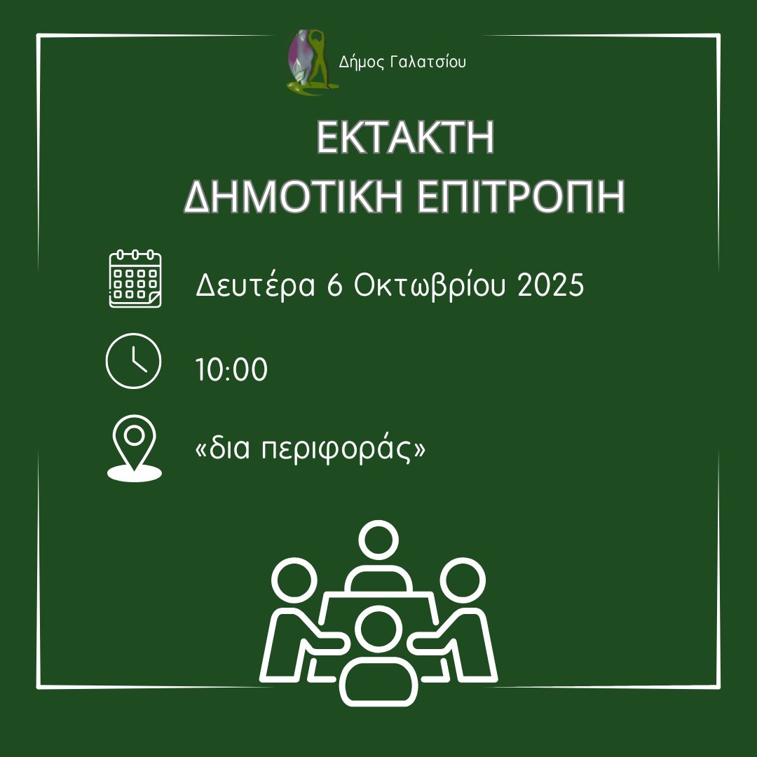 Έχοντας υπόψη τις διατάξεις του άρθρου 75 του Ν. 3852/2010 (ΚΑΛΛΙΚΡΑΤΗΣ) όπως αυτός αντικαταστάθηκε και ισχύει με τα άρθρα 8 και 9 του Ν. 5056/2023, σας καλούμε στην Έκτακτη Συνεδρίαση της Δημοτικής Επιτροπής που θα πραγματοποιηθεί την 06η Οκτωβρίου 2025, ημέρα Δευτέρα και ώρα 10:00 για την κατεπείγουσα λήψη απόφασης δικαστικής υπόθεσης του Δήμου, που αναφέρεται στο μοναδικό θέμα της ημερήσιας διάταξης.