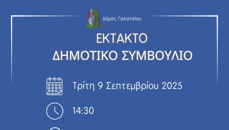 Πρόσκληση έκτακτης συνεδρίασης Δημοτικού Συμβουλίου, «δια περιφοράς», για σήμερα Τρίτη 9 Σεπτεμβρίου 2025, στις 14:30