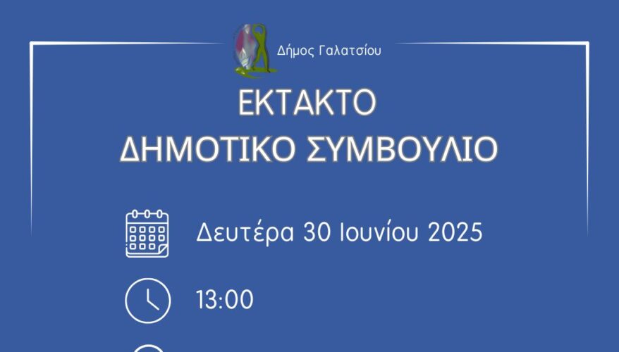 Σύμφωνα με τις διατάξεις του άρθρου 67 του Ν. 3852/2010, όπως αυτό αντικαταστάθηκε και ισχύει από το άρθρο 6 του Ν. 5056/2023, σας καλούμε για Έκτακτη Συνεδρίαση του Δημοτικού Συμβουλίου που θα πραγματοποιηθεί με τη διαδικασία της «δια περιφοράς» (e–mail, τηλέφωνο και μέσω μηνύματος), την 30η Ιουνίου 2025, ημέρα Δευτέρα και ώρα 13:00 έως 13:30, για την άμεση λήψη απόφασης παράτασης μέρους της Διαδημοτικής Συνεργασίας της ΥΔΟΜ με το Δήμο της Ν. Ιωνίας λόγω καταληκτικής ημερομήνίας, που αναφέρεται στο μοναδικό θέμα της Ημερήσιας Διάταξης.
