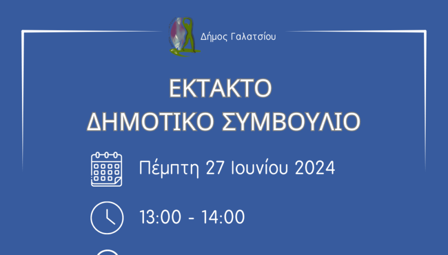 Σύμφωνα με τις διατάξεις του άρθρου 67 του Ν. 3852/2010, όπως αυτό αντικαταστάθηκε και ισχύει από το άρθρο 6 του Ν. 5056/2023, σας καλούμε για έκτακτη συνεδρίαση του Δημοτικού Συμβουλίου που θα πραγματοποιηθεί με τη διαδικασία της «δια περιφοράς» (e–mail, τηλέφωνο και μέσω μηνύματος), την 27η Ιουνίου 2024, ημέρα Πέμπτη και ώρα 13:00 έως 14:00, για την άμεση ανάγκη λήψης αποφάσεων λόγω καταληκτικών ημερομηνιών, που αναφέρονται στα θέματα της ημερήσιας διάταξης.