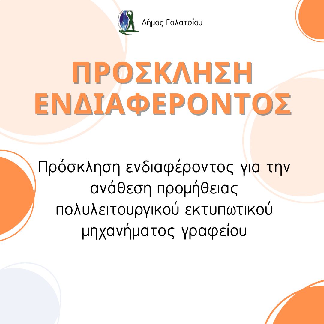 29-09-2025 Ενημέρωση, Προσκλήσεις Ενδιαφέροντος Αρ. Πρωτ.: 35796 Ημ/νία Πρωτ.: 26/9/2025 Εποπ. Φορέας: ΔΗΜΟΣ ΓΑΛΑΤΣΙΟΥ