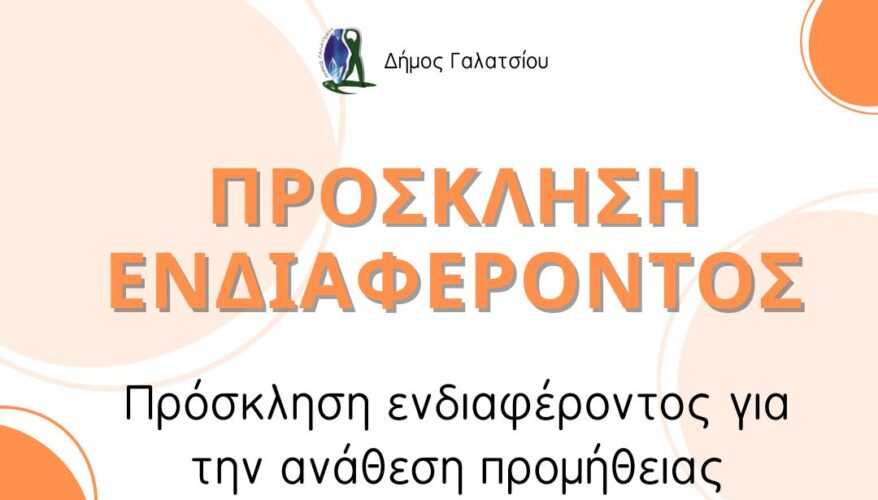 Ο Δήμος μας ενδιαφέρεται βάσει του άρθρου 118 του Ν.4412/2016 να αναθέσει την προμήθεια υδραυλικών υλικών και μικρούλικών για τις ανάγκες συντήρησης του Δήμου Γαλατσίου, ενδεικτικού προϋπολογισμού δεκατριών χιλιάδων ευρώ (13.000 €) συμπεριλαμβανομένου του αναλογούντος Φ.Π.Α., σύμφωνα με το υπ’αριθ. πρωτ. 30030/31.07.2025 (ΑΔΑΜ 25REQ017372384) Πρωτογενές αίτημα και την υπ΄αριθ.6/2025 Μελέτη της «Διεύθυνσης Τεχνικών Υπηρεσιών »του Τμήματος Μελετών και Έργων.