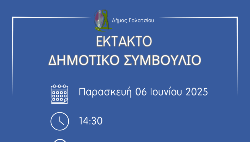 Σύμφωνα με τις διατάξεις του άρθρου 67 του Ν. 3852/2010, όπως αυτό αντικαταστάθηκε και ισχύει από το άρθρο 6 του Ν. 5056/2023, σας καλούμε για έκτακτη συνεδρίαση του Δημοτικού Συμβουλίου που θα πραγματοποιηθεί με τη διαδικασία της «δια περιφοράς» (e–mail, τηλέφωνο και μέσω μηνύματος), την 06η Ιουνίου 2025, ημέρα Παρασκευή και ώρα 14:30 έως 15:00, για την άμεση λήψη απόφασης έγκρισης της 4ης αναμόρφωσης λόγω κατεπείγουσας διασφάλισης των έγκαιρων διαδικασιών διεξαγωγής διαγωνισμών, που αναφέρεται στο μοναδικό θέμα της ημερήσιας διάταξης.