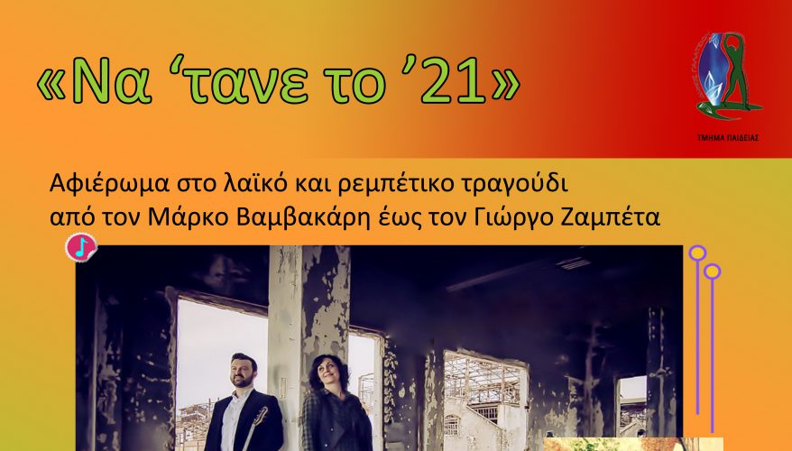 Μουσική εκδήλωση – συναυλία: «Να ‘τανε το ‘21» – αφιέρωμα στο λαϊκό και ρεμπέτικο τραγούδι από τον Μάρκο Βαμβακάρη έως τον Γιώργο Ζαμπέτα