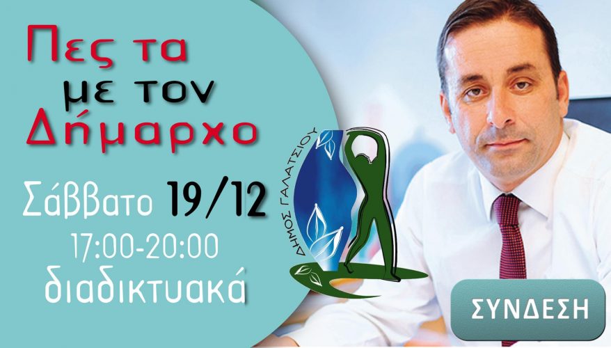 Ο Δήμαρχος θα επικοινωνήσει διαδικτυακά με τους πολίτες, καθώς λόγω του κορωνοϊού δεν επιτρέπονται οι συναθροίσεις και επιβάλλεται η απόσταση, για να ακούσει τους προβληματισμούς και τις ανησυχίες τους και θα απαντήσει στις ερωτήσεις τους με σκοπό να βρεθούν λύσεις από κοινού για το Γαλάτσι.