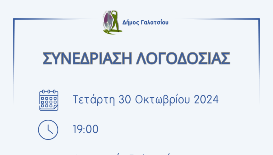 Σας καλούμε στην Ειδική Συνεδρίαση Λογοδοσίας της Δημοτικής Αρχής στις 30.10.2024 ημέρα Τετάρτη και ώρα 19:00, η οποία θα γίνει σε Μεικτή Συνεδρίαση (δια ζώσης και ταυτόχρονα με τηλεδιάσκεψη) στην αίθουσα του Δημοτικού Συμβουλίου σύμφωνα με τις διατάξεις του άρθρου 67Α του Ν. 3852/2010, όπως προστέθηκε και ισχύει με το άρθρο 7 του Ν. 5056/2023.