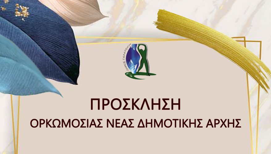 Σας προσκαλούμε και θα είναι τιμή μας να παρευρεθείτε στην τελετή ορκωμοσίας του Δημάρχου και του νέου Δημοτικού Συμβουλίου, την Παρασκευή 30 Αυγούστου 2019, στις 11:00, στην αίθουσα του Πνευματικού Κέντρου «Θάνος Κωτσόπουλος», στο Δημαρχείο Γαλατσίου.