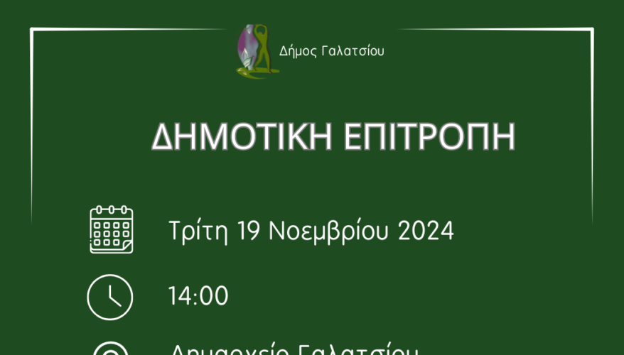 Έχοντας υπόψη τις διατάξεις του άρθρου 75 του Ν. 3852/2010 (ΚΑΛΛΙΚΡΑΤΗΣ) όπως αυτός αντικαταστάθηκε και ισχύει με τα άρθρα 8 και 9 του Ν. 5056/2023, σας καλούμε στο Δημαρχιακό Κατάστημα στην αίθουσα του Δημοτικού Συμβουλίου στη Συνεδρίαση της Δημοτικής Επιτροπής την 19η Νοεμβρίου 2024, ημέρα Τρίτη και ώρα 14:00, για συζήτηση και λήψη απόφασης στα θέματα της Ημερήσιας Διάταξης.
