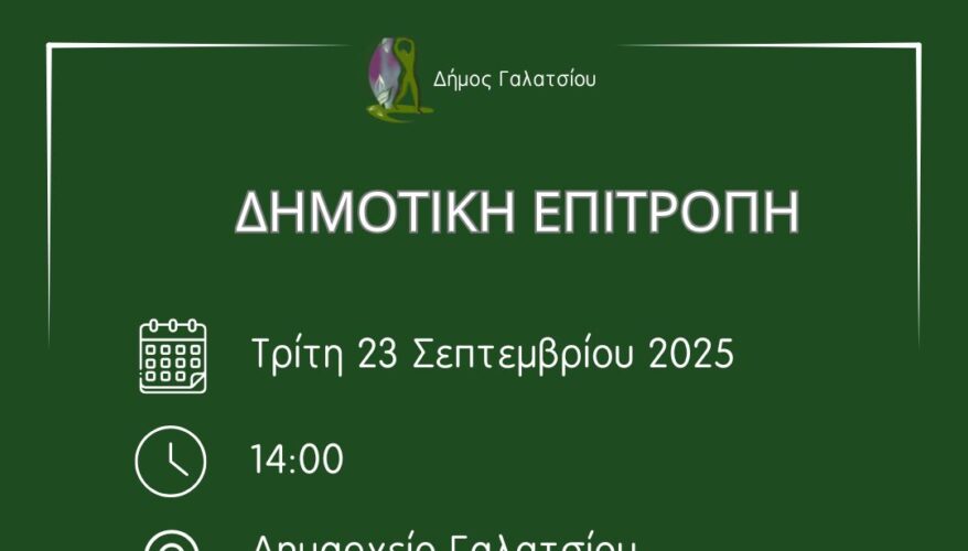 Έχοντας υπόψη τις διατάξεις του άρθρου 75 του Ν. 3852/2010 (ΚΑΛΛΙΚΡΑΤΗΣ) όπως αυτός αντικαταστάθηκε και ισχύει με τα άρθρα 8 και 9 του Ν. 5056/2023, σας καλούμε στο Δημαρχιακό Κατάστημα στην αίθουσα του Δημοτικού Συμβουλίου στη Συνεδρίαση της Δημοτικής Επιτροπής την 23η Σεπτεμβρίου 2025, ημέρα Τρίτη και ώρα 14:00, για συζήτηση και λήψη απόφασης στα παρακάτω θέματα της Ημερήσιας Διάταξης.