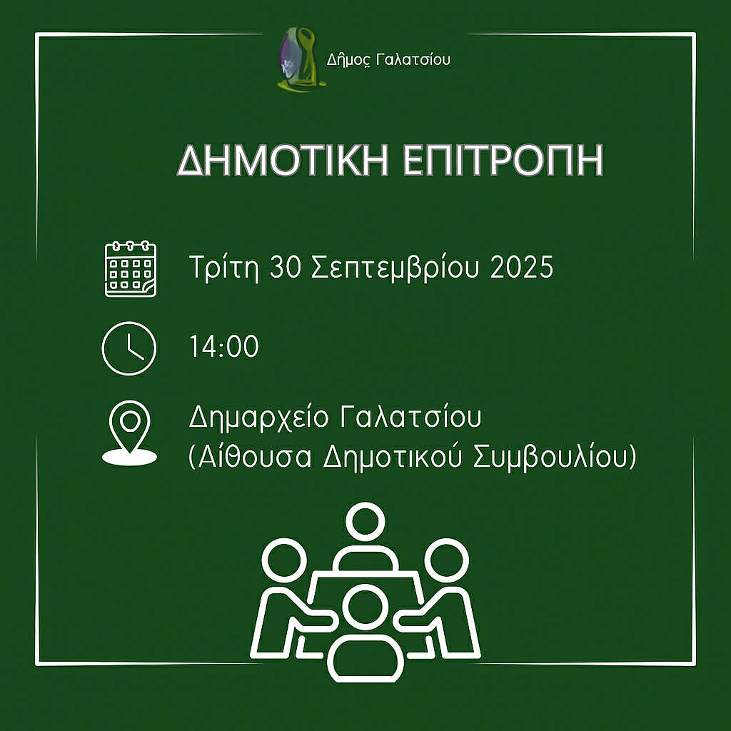 Έχοντας υπόψη τις διατάξεις του άρθρου 75 του Ν. 3852/2010 (ΚΑΛΛΙΚΡΑΤΗΣ) όπως αυτός αντικαταστάθηκε και ισχύει με τα άρθρα 8 και 9 του Ν. 5056/2023, σας καλούμε στο Δημαρχιακό Κατάστημα στην αίθουσα του Δημοτικού Συμβουλίου στη Συνεδρίαση της Δημοτικής Επιτροπής την 30η Σεπτεμβρίου 2025, ημέρα Τρίτη και ώρα 14:00, για συζήτηση και λήψη απόφασης στα παρακάτω θέματα της Ημερήσιας Διάταξης.