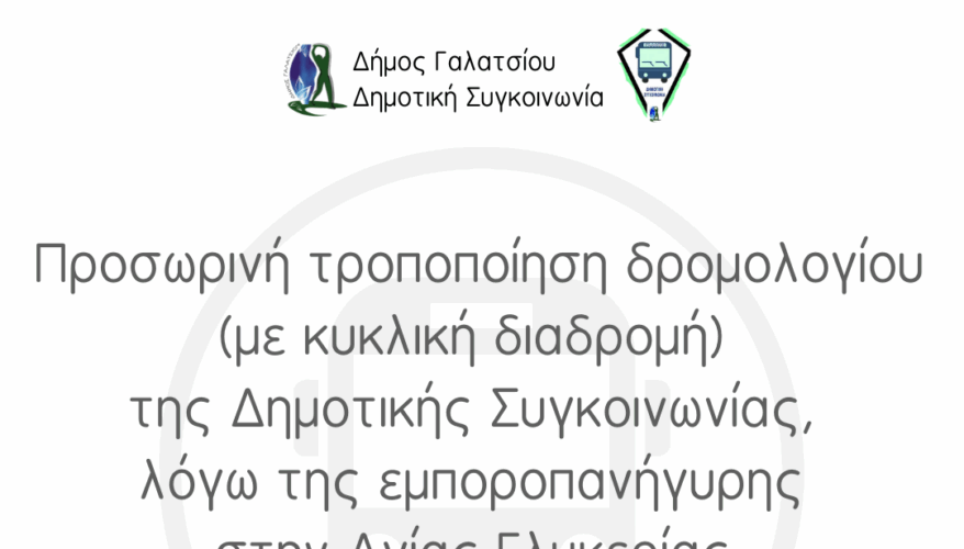 Προσωρινή τροποποίηση δρομολογίου (με κυκλική διαδρομή) της Δημοτικής Συγκοινωνίας, λόγω της εμποροπανήγυρης στην Αγίας Γλυκερίας στις 12 Μαΐου 2025