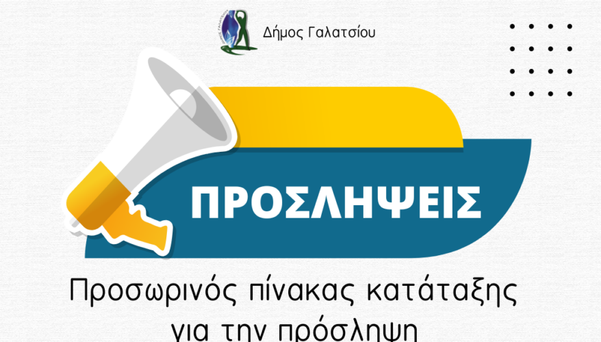 Αναρτήθηκαν σήμερα Παρασκευή 30 Αυγούστου 2024 οι προσωρινοί πίνακες αποτελεσμάτων της υπ.αριθμ.πρωτ:24802/17.07.2024 ανακοίνωσης, για την πρόσληψη προσωπικού με σχέση εργασίας ιδιωτικού δικαίου ορισμένου χρόνου για την καθαριότητα σχολικών μονάδων στο Δήμο Γαλατσίου, διδακτικού έτους 2024-2025.