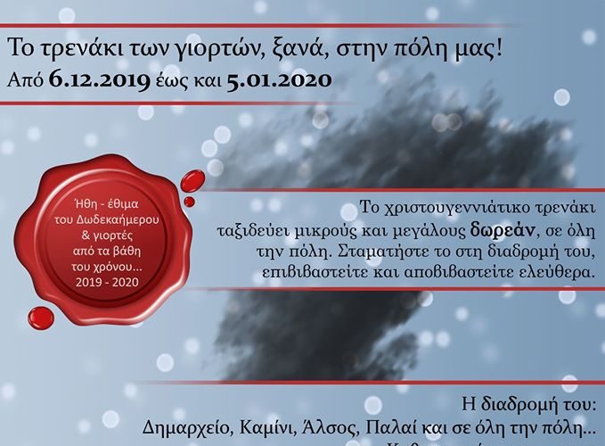 Επιβιβαστείτε και αποβιβαστείτε, ελεύθερα, στο τρενάκι μας κι ελάτε. Η πόλη γιορτάζει!