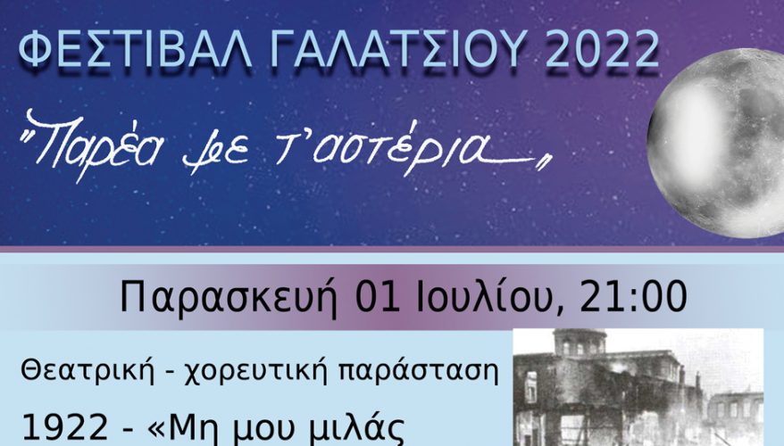 Σήμερα 1η Ιουλίου, θεατρική – χορευτική παράσταση 1922 – “Μη μου μιλάς για τ΄ αηδόνι”, στο Ανοιχτό Θέατρο Άλσος Βεΐκου με ΕΛΕΥΘΕΡΗ ΕΙΣΟΔΟ!