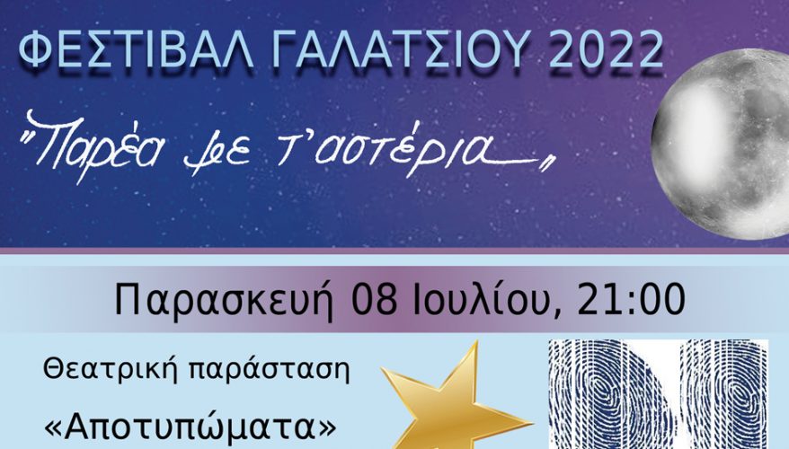 Σήμερα 8 Ιουλίου, θεατρική παράσταση “Αποτυπώματα”, στο Ανοιχτό Θέατρο Άλσος Βεΐκου με ΕΛΕΥΘΕΡΗ ΕΙΣΟΔΟ!