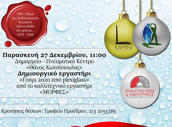 Σήμερα, Παρασκευή 27.12.2019 – χριστουγεννιάτικες εκδηλώσεις Δήμου Γαλατσίου 2019-2020