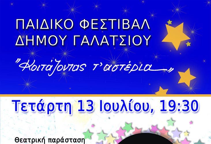 Θεατρική παράσταση “Τα δώρα του Προμηθέα”, σήμερα Τετάρτη 13 Ιουλίου, στις 19:30, στο ανοιχτό Γήπεδο Μπάσκετ Άλσους Βεΐκου (είσοδος Β’), στις 19:30, στο πλαίσιο του Παιδικού Φεστιβάλ Δήμου Γαλατσίου «Κοιτάζοντας τ’ αστέρια».
