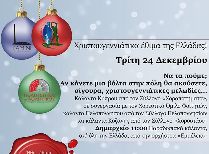 Σήμερα, Τρίτη 24.12.2019 – χριστουγεννιάτικες εκδηλώσεις Δήμου Γαλατσίου 2019-2020
