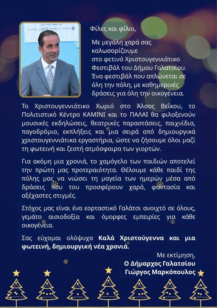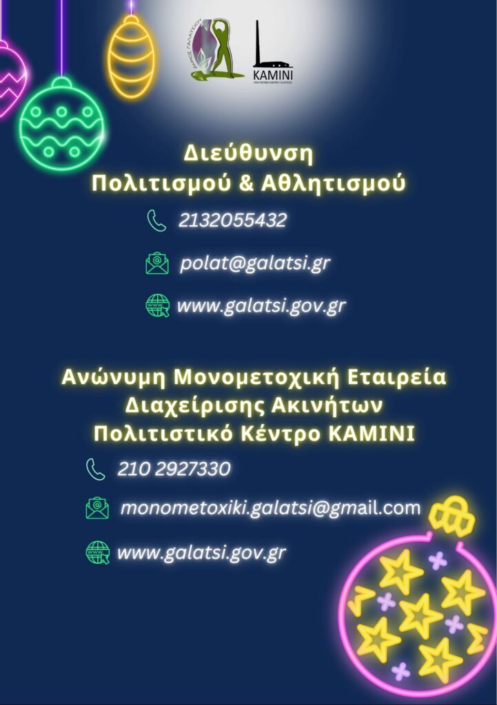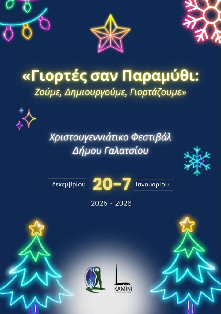 Στις 20 Δεκεμβρίου 2025 ξεκινάει το Χριστουγεννιάτικο Φεστιβάλ Δήμου Γαλατσίου 2025-2026 – Αναλυτικό πρόγραμμα εκδηλώσεων