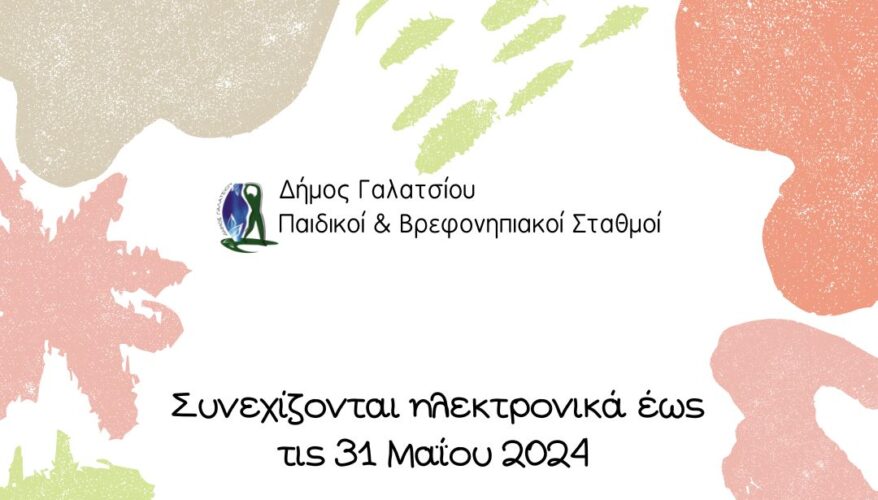 Συνεχίζονται ηλεκτρονικά έως τις 31 Μαΐου 2024 οι εγγραφές και επανεγγραφές για τους Παιδικούς/Βρεφονηπιακούς Σταθμούς Δήμου Γαλατσίου