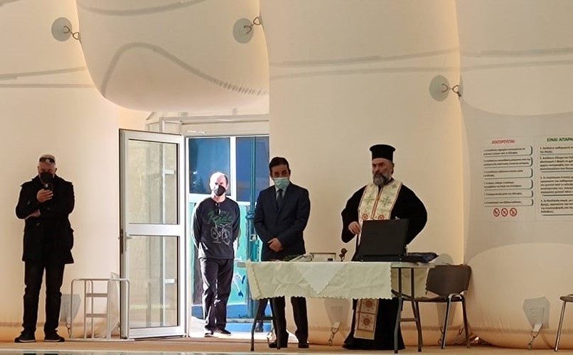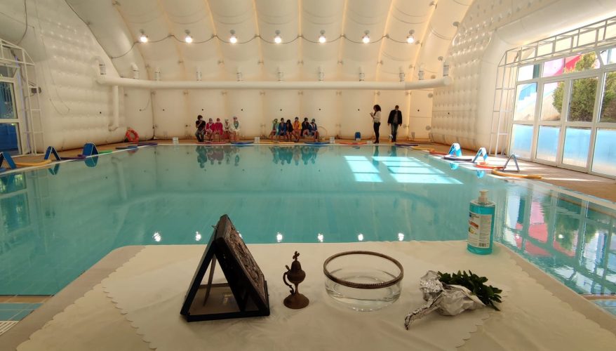 Με κατάνυξη, τηρώντας πιστά όλα τα υγειονομικά πρωτόκολλα, πραγματοποιήθηκε ο Αγιασμός των Υδάτων στη μικρή πισίνα του Δημοτικού Κολυμβητηρίου Γαλατσίου, στο Άλσος Βεΐκου, ανήμερα της εορτής των Θεοφανείων, την Πέμπτη 6 Ιανουαρίου 2022.