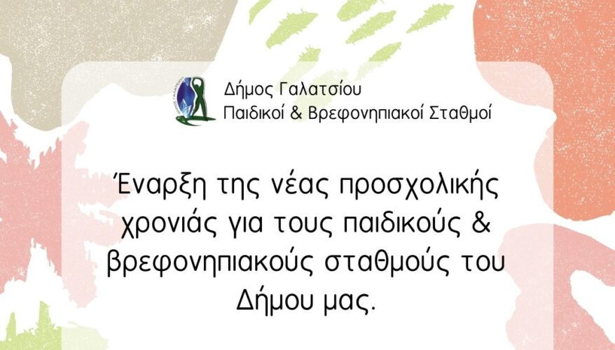 Οι Παιδικοί και Βρεφονηπιακοί Σταθμοί του Δήμου Γαλατσίου ξεκινούν τη λειτουργία τους με τα παιδιά των επανεγγραφών τη Δευτέρα 1 Σεπτεμβρίου 2025.
