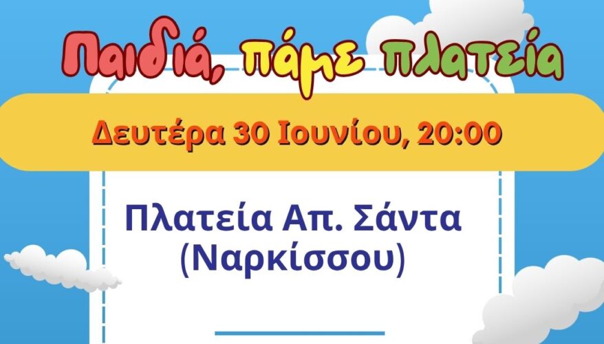 Τη Δευτέρα 30 Ιουνίου, στις 20:00, ταχυδακτυλουργός στην πλατεία Απ. Σάντα (Ναρκίσσου)