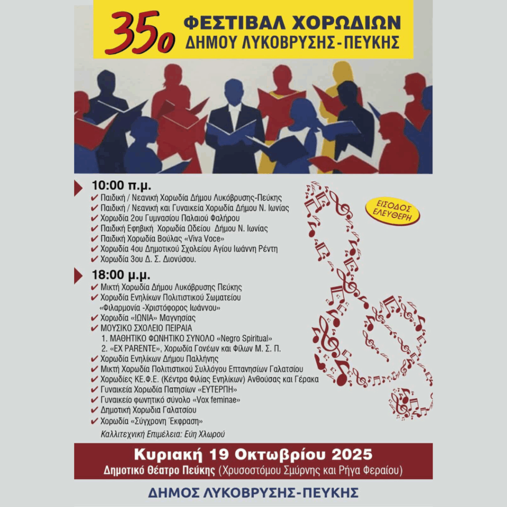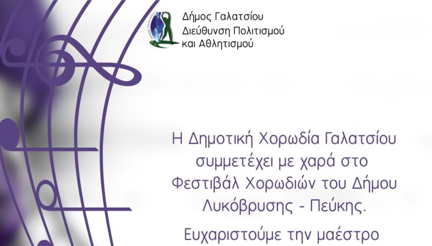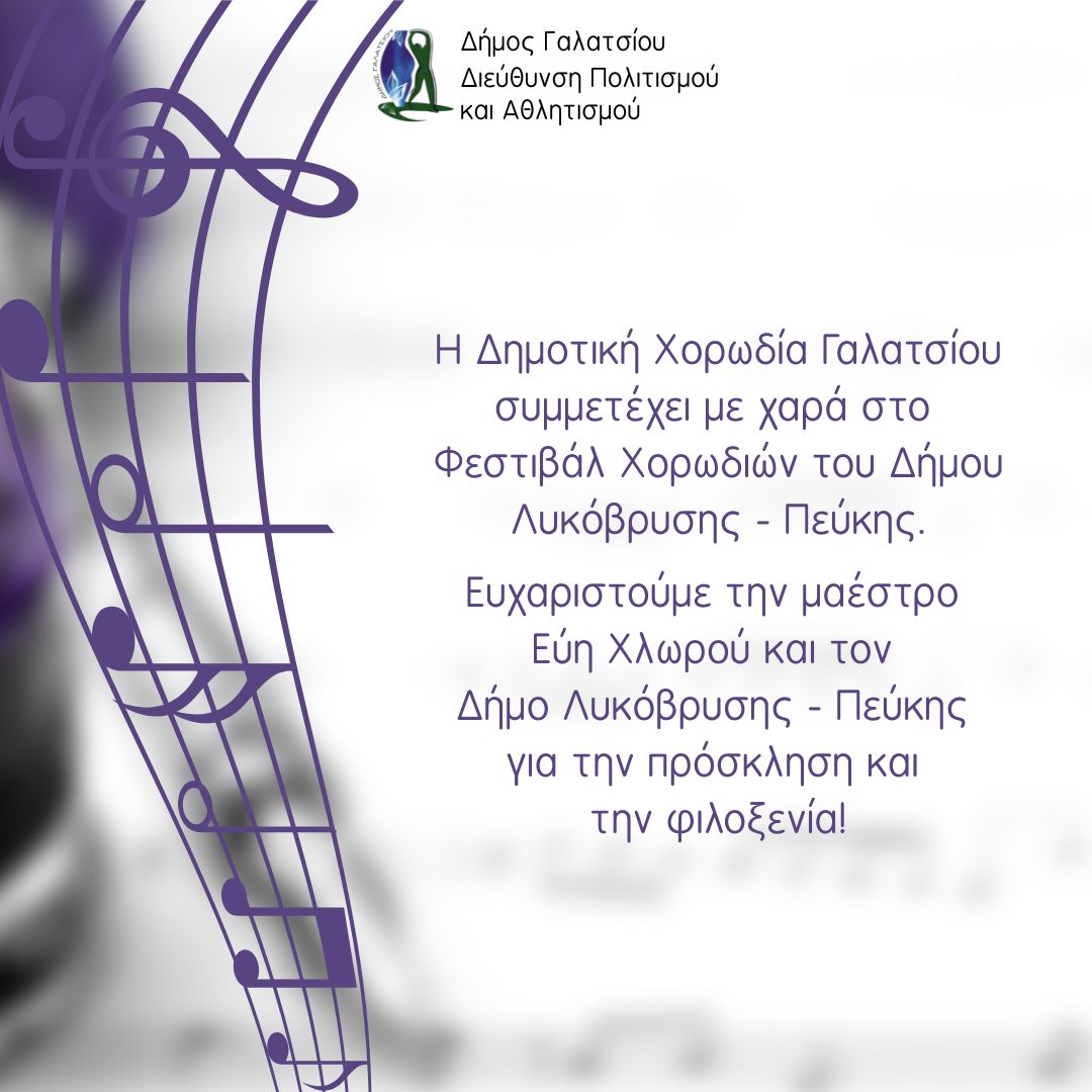 Η Δημοτική Χορωδία Γαλατσίου συμμετέχει με ιδιαίτερη χαρά στο Φεστιβάλ Χορωδιών του Δήμου Λυκόβρυσης – Πεύκης!