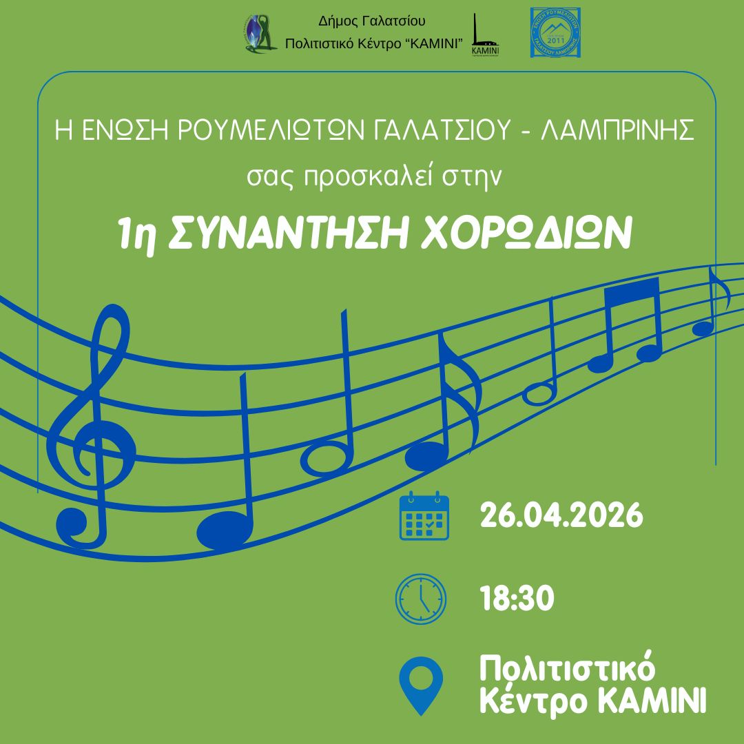Η Ένωση Ρουμελιωτών Γαλατσίου – Λαμπρινής σας προσκαλεί σε μια ξεχωριστή μουσική βραδιά γεμάτη μελωδίες και αρμονίες.