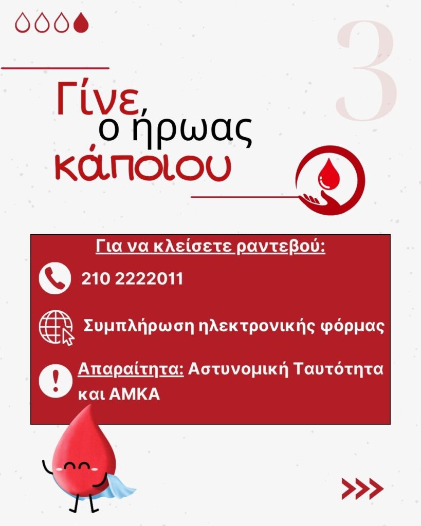 Την Παρασκευή 17 Απριλίου 2026, 09:30 με 13:30, εθελοντική αιμοδοσία κατόπιν ραντεβού, στο ισόγειο του Δημαρχείου