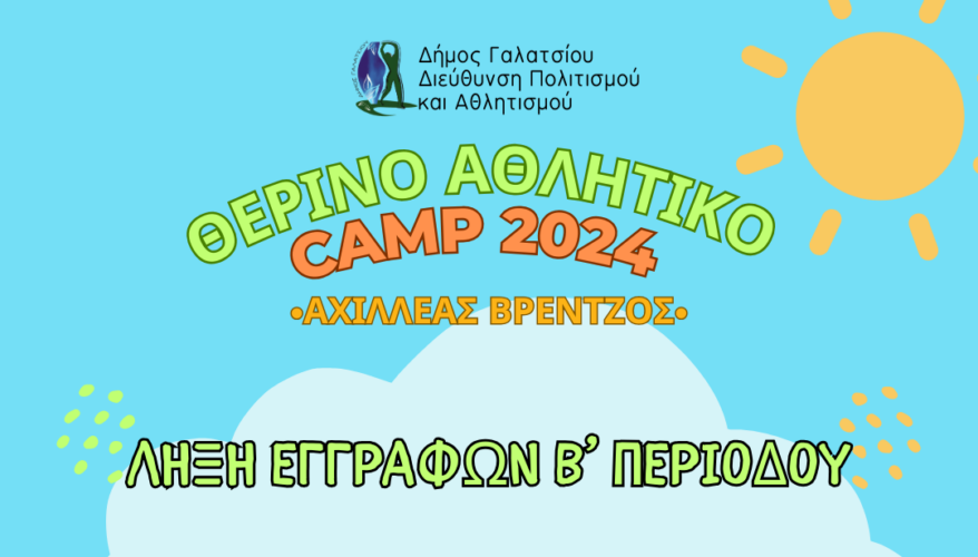 Την Πέμπτη 20 Ιουνίου 2024 λήγουν οι εγγραφές για τη Β’ περίοδο του θερινού αθλητικού Camp 2024