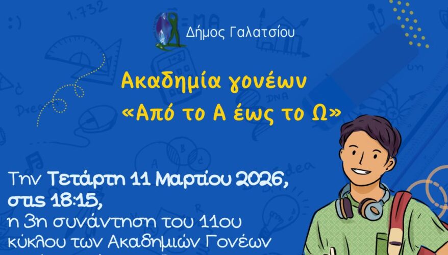 Η 3η Συνάντηση της Ακαδημίας Γονέων θα πραγματοποιηθεί την Τετάρτη 11 Μαρτίου 2026 και ώρα 18:15 με θέμα: