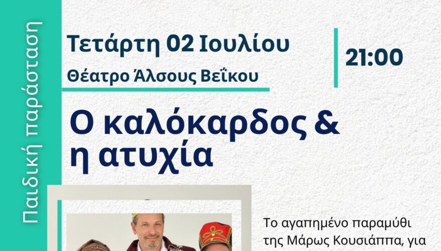 Την Τετάρτη 2 Ιουλίου 2025, στις 21:00, η παιδική θεατρική παράσταση «Ο καλόκαρδος και η ατυχία», στο Ανοιχτό Θέατρο Άλσους Βεΐκου, στο πλαίσιο του Θερινού Φεστιβάλ Γαλατσίου 2025