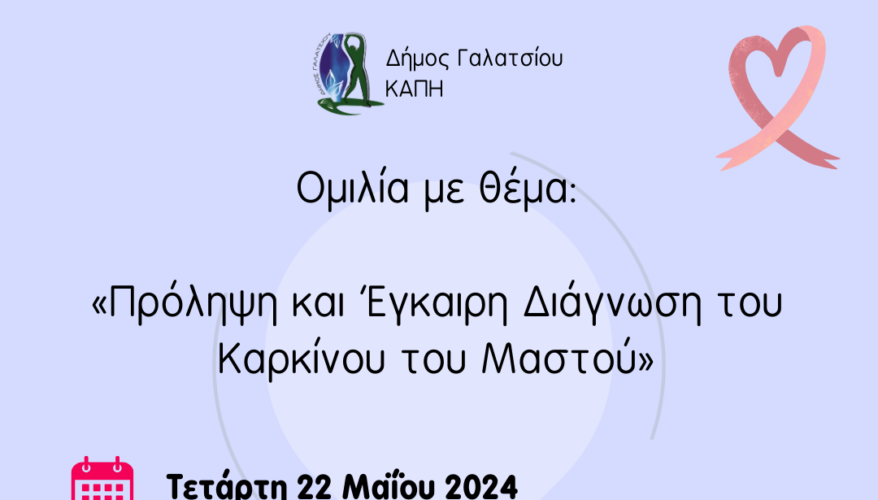 Ομιλία με θέμα: «Πρόληψη και Έγκαιρη Διάγνωση του Καρκίνου του Μαστού»