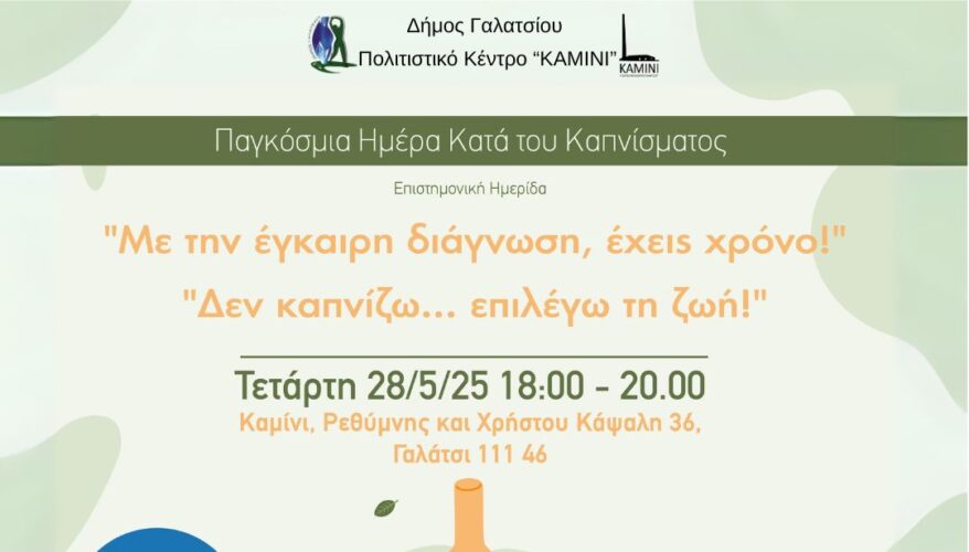 Επιστημονική Ημερίδα για την Αντικαπνιστική εκστρατεία & τον καρκίνο του πνεύμονα με θέμα: «Με την έγκαιρη διάγνωση, έχεις τον χρόνο», «Δεν καπνίζω .. επιλέγω τη ζωή!»