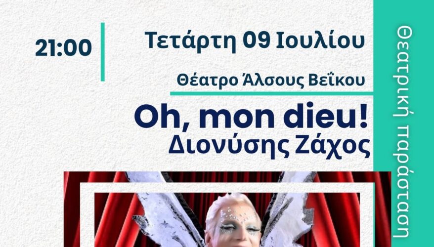 Την Τετάρτη 9 Ιουλίου 2025, στις 21:00, μια ξεχωριστή παράσταση με τον σόουμαν Διονύση Ζάχο «Oh, mon dieu!», στο Ανοιχτό Θέατρο Άλσους Βεΐκου, στο πλαίσιο του Θερινού Φεστιβάλ Γαλατσίου 2025.
