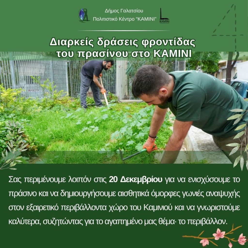 Το Σάββατο 20 Δεκεμβρίου 2025 η 20η δράση φροντίδας του πρασίνου στο Πολιτιστικό Κέντρο ΚΑΜΙΝΙ