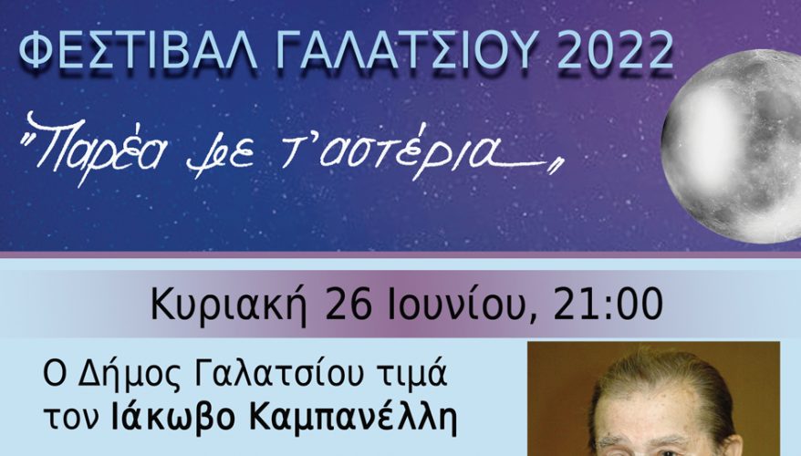 Το Σαββατοκύριακο 25 & 26 Ιουνίου, στο Φεστιβάλ Γαλατσίου μουσική εκδήλωση αφιερωμένη στον Λάκη Χαλκιά και θεατρική παράσταση του Ιάκωβου Καμπανέλλη, αναλυτικά: