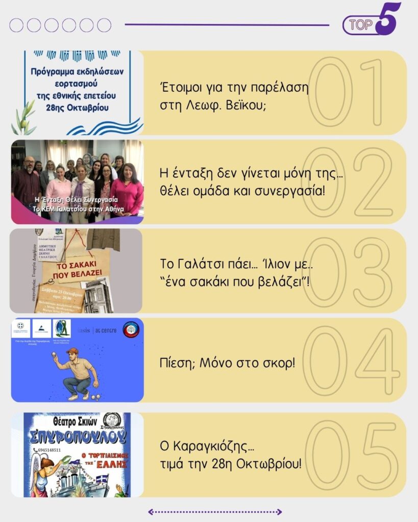 Το TOP5 της εβδομάδας για να ενημερωθείτε για όσα έρχονται