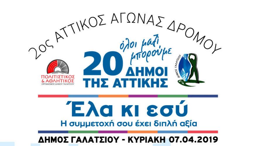 Την Κυριακή 7 Απριλίου 2019, διοργανώνεται από το «ΟΛΟΙ ΜΑΖΙ ΜΠΟΡΟΥΜΕ» ο 2ος Αττικός Αγώνας Δρόμου με την συμμετοχή 20 Δήμων της Αττικής, μεταξύ των οποίων και ο Δήμος Γαλατσίου.